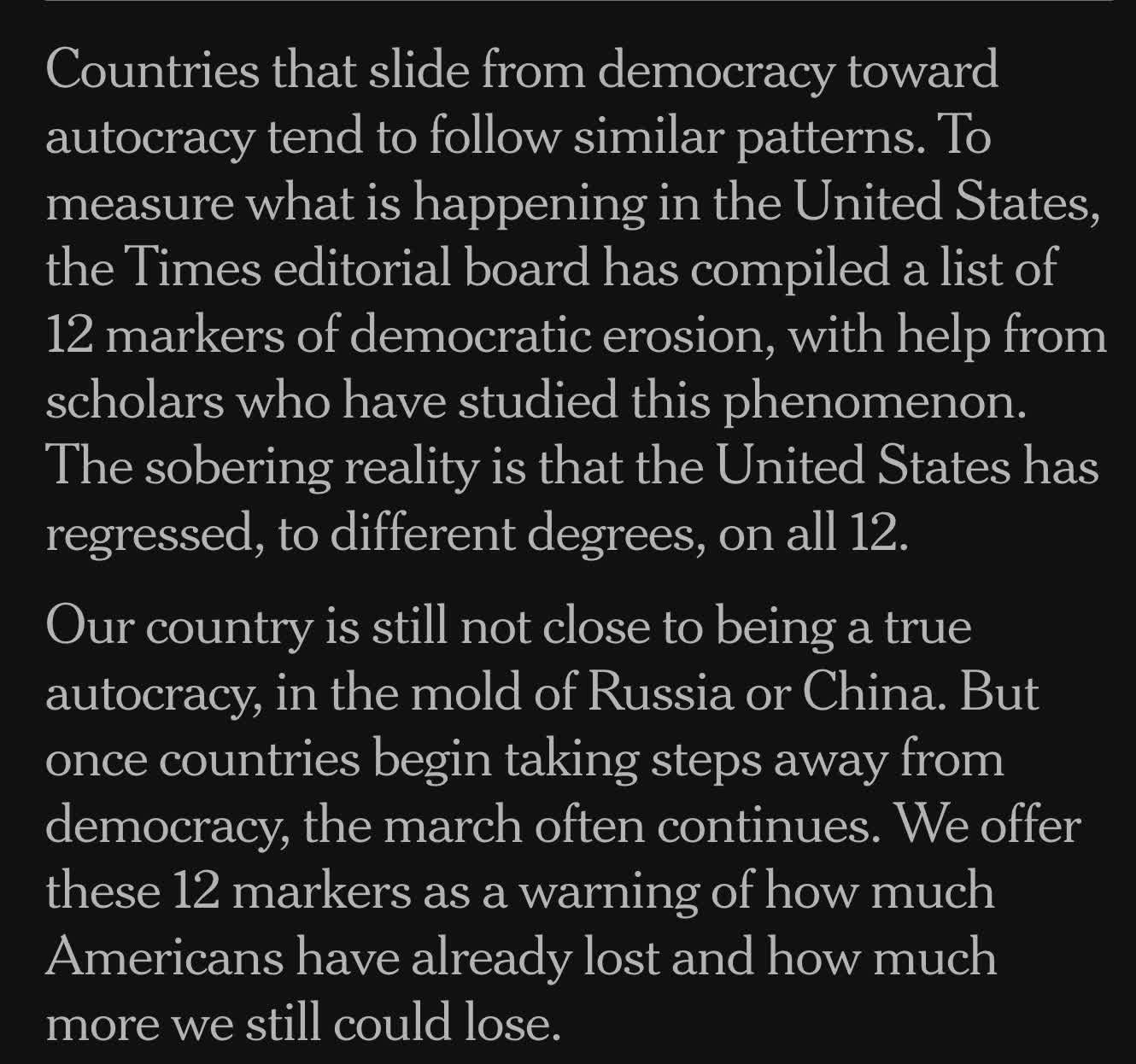 New York Times editorial board writes a piece about Americas descent into autocracy under Trump regime. Hello......?? @anneapplebaum.bsky.social published her book in July 2024. Autocracy inc. Why has it taken NYT so long? They have enabled Trump. https://www.nytimes.com/interactive/2025/10/31/opinion/trump-autocracy-democracy-report.html?unlocked_article_code=1.xk8.VECM.tMjcBk54o8_8&smid=bs-share